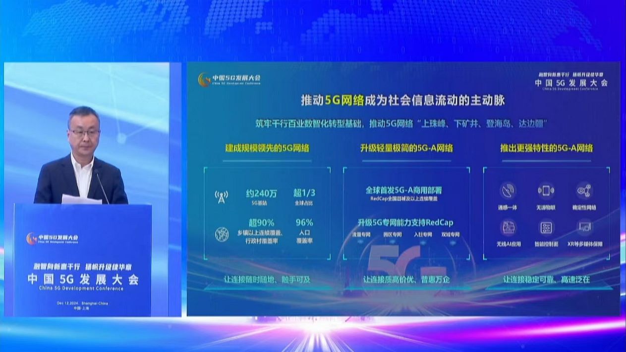 一是推動(dòng)5G網(wǎng)絡(luò)成為社會(huì)信息流動(dòng)的主動(dòng)脈。中國(guó)移動(dòng)堅(jiān)持5G創(chuàng)新引領(lǐng),全力以赴筑牢千行百業(yè)數(shù)字化轉(zhuǎn)型基礎(chǔ),推動(dòng)5G網(wǎng)絡(luò)“上珠峰、下礦井、登海島、達(dá)邊疆”。中國(guó)移動(dòng)率先建成規(guī)模領(lǐng)先的5G網(wǎng)絡(luò),累計(jì)建成5G基站約240萬(wàn),占全球5G基站總數(shù)的3分之1,實(shí)現(xiàn)鄉(xiāng)鎮(zhèn)以上連續(xù)覆蓋,行政村覆蓋率超過(guò)90%,人口覆蓋率達(dá)到96%。同時(shí),中國(guó)移動(dòng)全面升級(jí)輕量極簡(jiǎn)的5G-A網(wǎng)絡(luò)。今年3月全球首發(fā)5G-A的商用,推動(dòng)RedCap率先規(guī)模部署,實(shí)現(xiàn)全國(guó)縣城及以上連續(xù)覆蓋,同時(shí)積極推動(dòng)RedCap融入流量、園區(qū),入駐、雙域四張專網(wǎng)。此外,中國(guó)移動(dòng)創(chuàng)新推出更強(qiáng)特性的5G-A網(wǎng)絡(luò),重點(diǎn)聚焦通感一體、無(wú)源物聯(lián)、無(wú)線AI應(yīng)用、確定性網(wǎng)絡(luò)等關(guān)鍵技術(shù),締造網(wǎng)絡(luò)差異化的優(yōu)勢(shì),讓連接穩(wěn)定可靠、高速泛在。