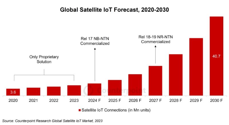 Counterpoint 預(yù)測,衛(wèi)星物聯(lián)網(wǎng)在農(nóng)業(yè)領(lǐng)域?qū)⒔?jīng)歷快速增長,在精準(zhǔn)農(nóng)業(yè)計(jì)劃的推動(dòng)下,2023-2030 年的復(fù)合年增長率將超過 52%。