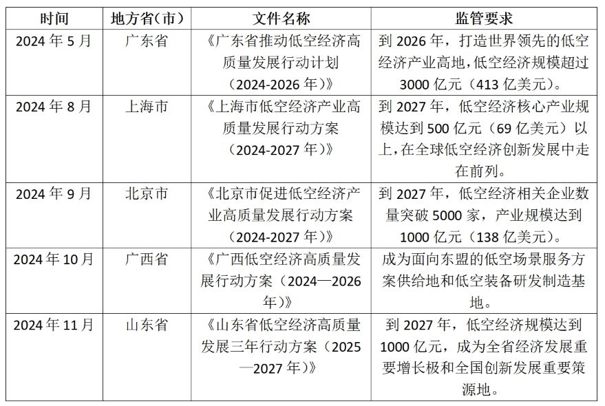 表1:促進(jìn)低空經(jīng)濟(jì)發(fā)展的部分地方政府行動(dòng)計(jì)劃。